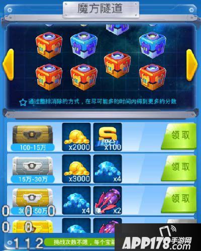 根据分数,可以获得相应的奖励,奖励内容包括金币、积分、钻石、装备等。相比其他活动关,魔方隧道的奖励是叠加型的!例如拿了55万分,可以获得100、15万、30万、50万一共4个挡的奖励!力度好逆天,以后周五、周日锁定你啦!