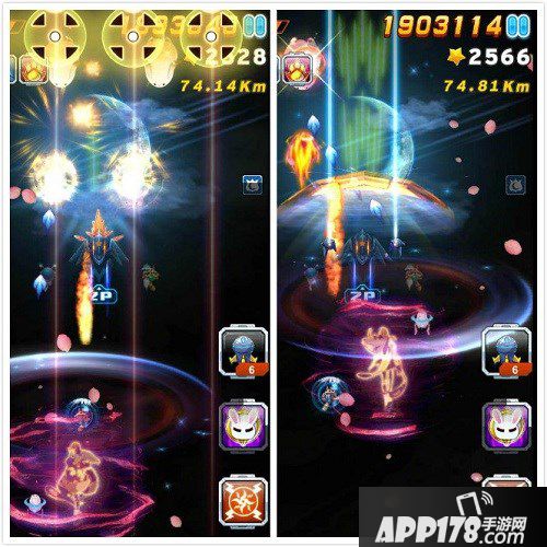 (四)双打模式。双打第4关,嫦娥撞掉前面2颗+后面一排4颗导弹,并击杀2只兔子(实在难以截取到单单击杀导弹的图)。1903114-1893048-(2566-2538)X12-(74.81-74.14)X2300=1903114-1893648-336-1541=7589,扣除第4关击杀的2架小敌机,说明击杀导弹没有得分。