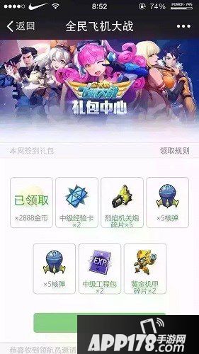 福利链接:http://game.weixin.qq.com/cgi-bin/actnew/giftalbumpage?appid=wx47a71dd8a1875943&jsapi_ticket=1&c=1&uin=MTM0NjQxOTk0MA%3D%3D&key=58c59e170642a25fdb366a6f83be01b86ad0d0915d4a4b7ec28c55838f2869e4b8f2434f01c96d1173afb7eb31db922f&pass_ticket=9%2F%2Bhe0awOleRIYS36e%2FfcC0IPczodwNFxXPpyaDd1J55NORp5548gn8w3zZBTVcL&from=message&isappinstalled=0