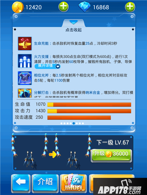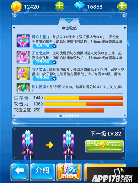 但是作为一个纯金币战机,可以强力到超过嫦娥的程度已经不容易了,被动和主动技能的伤害是不错的,但是发动的时候主机停止弹幕。回血技能在经典和双打中间的效果比较明显,还可以带上小黄机一起飞,配合动感的BGM还是要为小师妹点赞的!