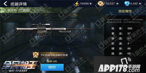 PK对战中造成额外伤害。多说无益,小编只想告诉大家,你绝对找不到另外一支枪械的基础伤害(有些永久枪械可以升级)比“他”高,因为,“他”是战神!更令人闻风丧胆的是,巴雷特可以通过穿木头而击杀敌人,逆天否?