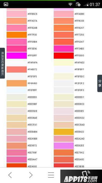 2、然后用颜色代码。例如下图就是一些颜色的代码,去掉前面的#号。