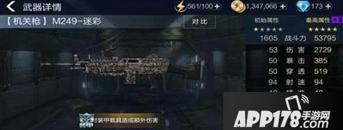 这把枪同样是机关枪,它就有机关枪的特点了,它的基础属性同样处于金字塔顶端,80发的子弹,虽然初始伤害不是很高,只要将枪械培养起来,它同样会成为一把威力惊人的武器。到了最高属性,综合战力能达到同样的五万多,并且伤害能达到两千多。并且它的轻便也会大大提升,更方便使用这把机枪。
