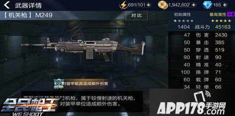 全民枪王中,枪械有多种,玩家在什么时候使用哪种枪械很重要,今天我们就来看看枪械M249,这支枪械很适合新手使用!在对抗装甲类敌人的时候,大家都知道使用一般的武器攻击作用不大,正是因为装甲的防御高,并且装甲的血量也不少。