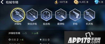 在游戏当中,玩家可以选择一个路线发展,根据自己的爱好可以选择冲锋枪,突击步枪,狙击枪,散弹枪,手枪和机关枪进行专精,学习之后能够加强此类武器的伤害或者暴击等等各种因素,也是提高战斗力的一个好方法。