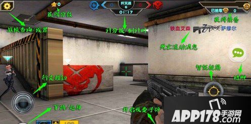 在游戏屏幕的左下方是控制角色的虚拟摇杆按键,而游戏屏幕的右下方则是控制枪支准心的瞄准方向以及射击按键,同时右侧还是控制人物视角的转向。