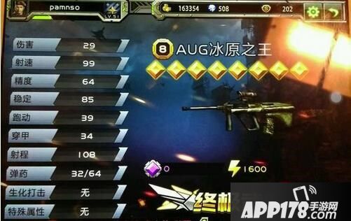 如果aug升级到终极那就比较的厉害了,伤害程度会大幅度增加,还有别的属性都会上升,整体的厉害程度就上升了。如果玩家在作战时配一把手枪那样就更好了!