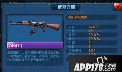 千万不要因为只是一把不起眼,并且只是A级枪械就小看AK47,细心的玩家会注意到,在很多比赛中,那些操作犀利的大神玩家们配备的就是这把AK47,可见这把突击步枪的实用。所以,AK47更适合PVP,PVE并不建议玩家培养使用。以上的精彩内容希望能帮助到大家,更多信息可进入APP178手游全民突击专区查看!