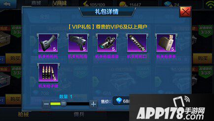 商城购买688钻石分为6组配件总计30个,这里单个配件价格23钻石,你没看错!真的比补齐系统售价要高哦,而且对于升一个部位的玩家会浪费大量的资源。
