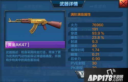 满级黄金AK47属性: