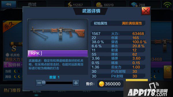 武器描述:稳定性和弹道精准良好的机关枪,在采用点射攻击时,也能对远距离目标进行较为精准的打击。