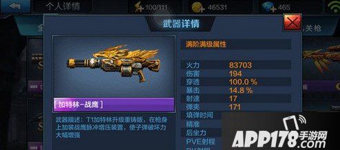 战鹰在黑夜激战里伤害能达到800以上,等于在原来的基础上增加了一倍,也是极力推荐大家使用的枪械,经常一梭子子弹打死两个以上的敌人,不过站撸之王的使用时也会长时间暴露在敌人的眼皮底下,很容易被狙杀或者集火击杀。