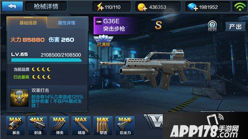 满级的G36E伤害数值为260在突击步枪里处于中等偏上水平,并且0.36的精准度在突击步枪里也是出类拔萃的。G36E最大的优势是自动三枪点射,按住射击后G36E会自动射击3发子弹然后停顿0.5秒,停顿后准星可以迅速恢复,所以G36E也是对于操作最没有需求的突击步枪。