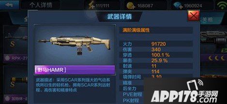 在PVE模式里野马是当之无愧的第一机关枪,在合作模式里野马也能去混队,虽然伤害不是最高但也不会拖后腿,对付闯关模式一把6W火力的野马足够通关噩梦模式了。