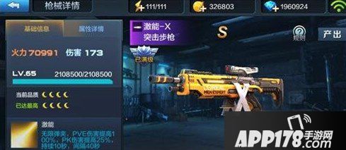 激能-X是唯一一把无限精准和没有后坐力的枪械,同样也是唯一一把可以在10秒内无限弹夹的枪械,不过虽然火力有8.6W伤害不过PVE的伤害没有8.5W的G36E要高,毕竟精准和弹夹的优势太大,伤害上自然低于其他突击步枪。