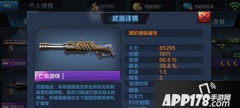 亡命游侠是所有枪械里面板伤害最高的,在PVP模式伤害非常高。不过在PVE里3发弹夹是肯定不够用的,我们就需要利用亡命游侠的枪械技能来打爆发性伤害。