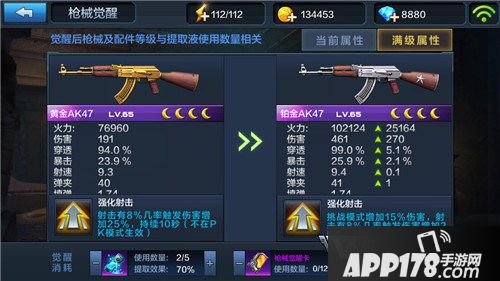 铂金AK47是目前唯一一把可以通过升级获得的枪械,枪械觉醒即使省去了提取的巨大配件损耗又节约了大量的钻石,在属性顶级的枪械里能通过觉醒获得的枪械自然是性价比最高的枪械,下面为大家带来详细介绍。