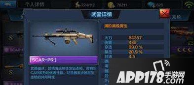 SCAR-PR是狙击枪里射速最快的,手感类似于突击步枪,PVP伤害偏低没有其他连狙高,毕竟射速高可以弥补伤害。SCAR-PR是最适合佣兵的狙击枪,超大的弹夹和射速在集火时能输出极高的伤害。