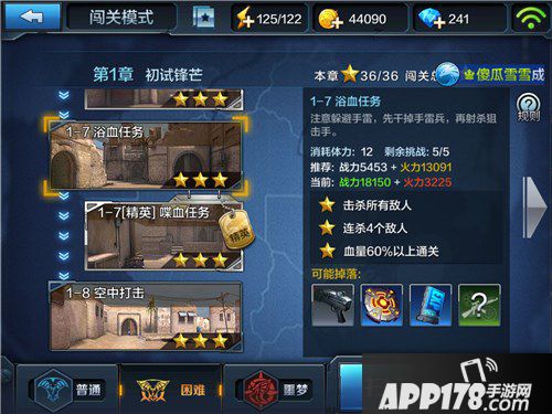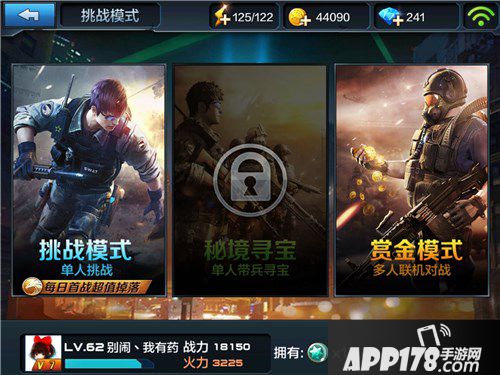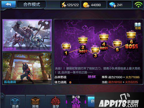 也是剧情模式,是玩家获取装备强化、枪械升级的材料的主要来源,分为普通、困难、噩梦三个难度级别,难度越高,关卡数越靠后,玩家能够获取的资源就越珍贵。