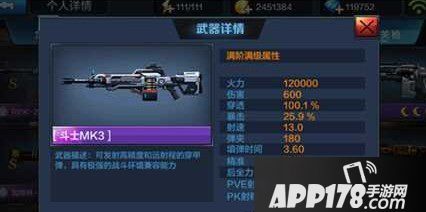 伤害上斗士MK3是绝对给力的伤害能达到600以上,能达到这个伤害的机关枪只有野马了,不过野马的射速偏慢。斗士MK3射速13精准度和突击步枪无异,伤害还略高于突击步枪,只能说斗士MK3真的很强。