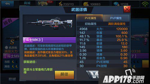 斗士MK3是目前最强机关枪,也是合作模式第一枪械,在合作模式里斗士的伤害明显高于其他枪械一大截。相对于雷神斗士的射速和基础伤害更高,并且在主角血量低于29%的时候可以增加21%的暴击率,斗士是合作模式大R玩家的首选枪械,当然月卡党也可以通过低保慢慢抽。