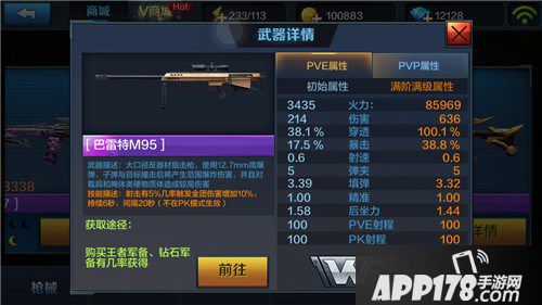 巴雷特M95在PVP模式里伤害还是不错的,虽然目前最强势的狙击枪是长弓,不过M95给佣兵使用的效果比任何狙击枪都要好。作为唯一一把有AOE爆炸伤害的狙击枪M95依旧非常强势,PVE模式佣兵使用闯关模式新手使用都是神器。