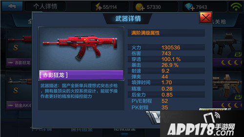 赤影狂龙伤害、精准度、射速都是突击步枪里数一数二的,特别是伤害上是突击步枪里在PVP最高的,极限伤害可以过1000其他突击步枪都达不到这个水平。赤影狂龙没有实战上的缺点就是价格上偏高,一把赤影狂龙成本在2万钻石左右。