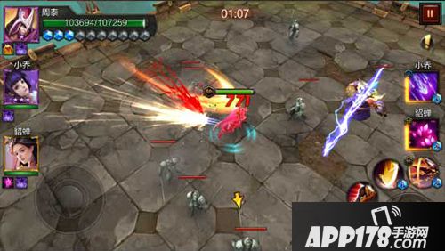周泰的大招赴汤蹈火可以对屏幕内所有目标造成高额物理伤害,这个范围性的高伤害技能在攻击的同时还附带持续流血效果,在一定时间内持续消耗目标的血量,所以在闯关推图、副本等PVE玩法中,对付众多的小怪是非常不错的。