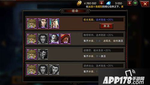(2)推荐军师:集齐水镜、刘备、诸葛亮、庞统,法术防御增加百分之二十;