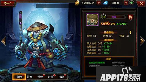 水镜武将的初始属性为,力量40,敏捷68,智力92,实力侧重点非常明显,乃智力型输出,拥有法术攻击光环可以极大限度辅助法术输出武将。与此同时,在不同星级的情况下,水镜武将成长的属性提升的幅度不同。