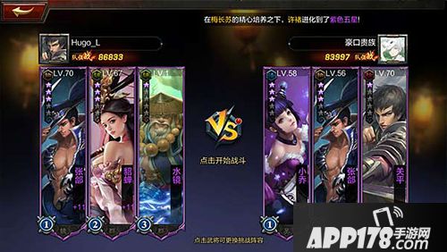 合理的上场武将阵容组合,是值得仔细研究的,按照目前武将定位,武将分成物,法,控,辅,防五大类。其实竞技场战斗时的普遍秘诀是,谁能坚持的久,谁就能在战场上有机会提供更多的输出,那谁就有更大的机会获得胜利。你可以围绕这个观点,组织战斗阵容,防+辅+控,防+控+控,防+辅+辅等等。