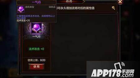 一气丹:少量增加武将法术攻击,武将橙色以上可以使用。