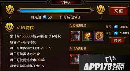 1.充值解锁VIP15,需要累积充值150000钻石。大概要花耗15000元人民币。