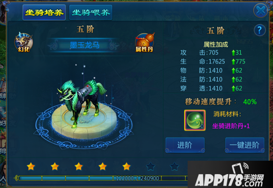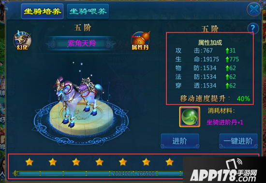 C、升星与升阶都会提升坐骑的属性并提升坐骑的移动速度