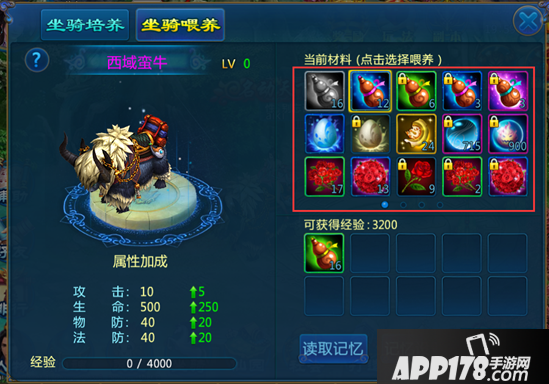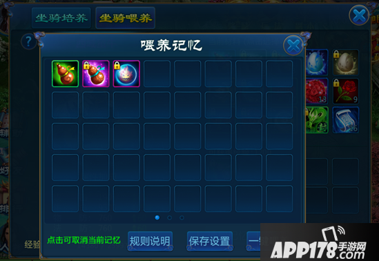 3、使用喂养记忆功能,可以更快的对坐骑进行喂养