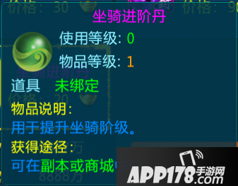 坐骑进阶丹可在商场使用元宝购买或者在高级副本获得