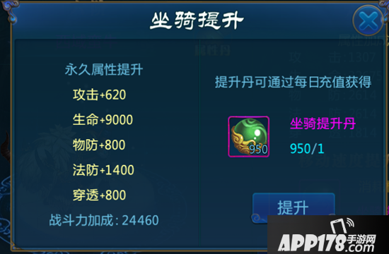 属性提升丹可以通过每日充值活动获得,使用一颗属性丹,可随机提升攻击、生命、物防、法防、穿透其中一样属性