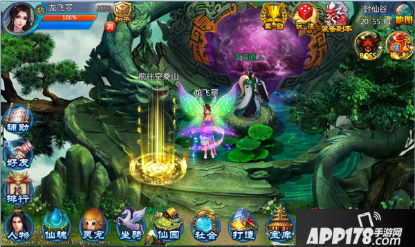 (2)普通模式布局分为左上角,右上角和左下角三个部分。左上角是人物头像、角色名、等级、血量显示。右上角是玩法、日常、奖励以及各类活动图标。左下角图标呈七字形,依次是辅助、宗门、好友、排行、人物、仙魂、灵宠、坐骑、商城、宝库、仙园、打造、社会、市场。