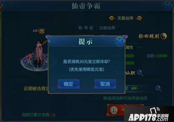 每天的仙职挑战次数无上限, 挑战冷却时间为30分钟,可通过消耗30元宝进行加速冷却