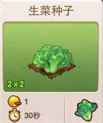 全民小镇生菜种子是最早就可以生产的种子,主要用来喂养奶牛,好让他可以在奶牛舍生产牛奶,生产很快就可以成熟了,是最快的,只要30秒。