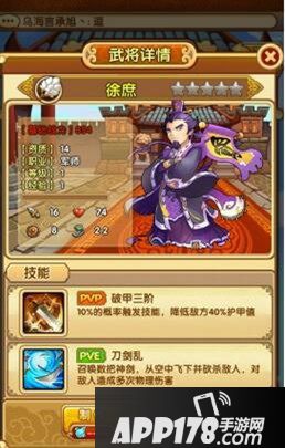 从这个技能看来徐庶的PK能力还是相当不错的,特别是当下全民堆护甲的时代,有这样一个破甲的技能妈妈再也不用担心我PK时被虐了!