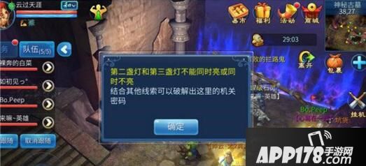 (确认答案熄灭好灯后,找 被打败的拦路鬼点我要试试机关密码,若答案正确,可再次对话进入下一关;若答案错误,少侠需要继续看下线索重新思考下答案。)
