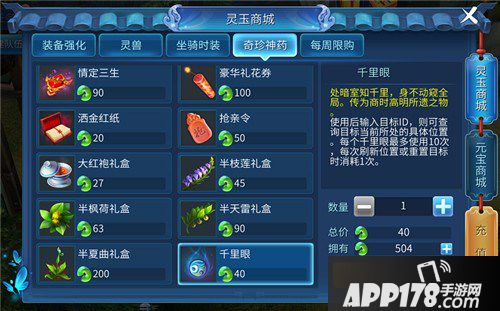 千里眼:售价40灵玉/560元宝,可以使用10次,每追踪指定在线玩家当前所在位置时消耗1次。