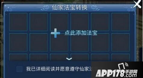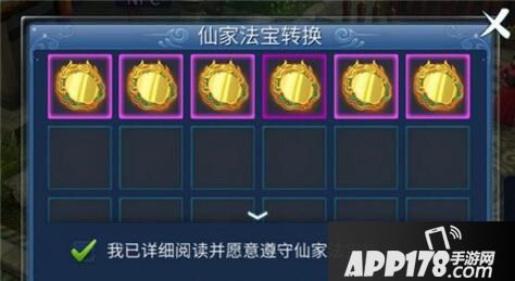 b.玩家需在"我已详细阅读并愿意遵守法宝转换规则"前面打勾;