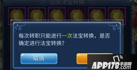 成功转职后给予玩家一次转移仙家法宝的机会,数量不限但只能转一次。只有背包中绑定的仙家法宝可以转换。