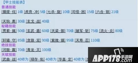 ►甲士技能表: