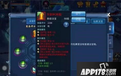 当然套装属性也是可以换的,不过只有仙家法宝的套装属性才能换哟,这个叫法宝提炼。进行法宝提炼的前提是必须带满6个一套的仙家法宝,法宝提炼的属性才有效哦(不同等阶的仙家可以混着带,但是要成套才能激活)。那带满了6个成套的仙家法宝之后呢,随便点开一个法宝,点打造然后右下角有一个提炼。