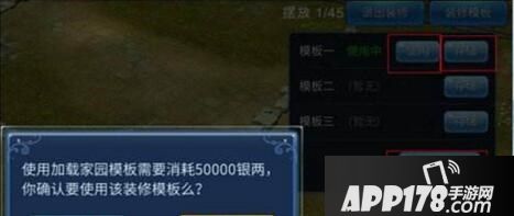 按一键收回,系统会将所有摆放的物品收回,当你还想要使用第一次摆放的模板时就可以点使用按钮进行使用,只是加载模板需要消耗50000银两。