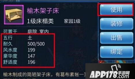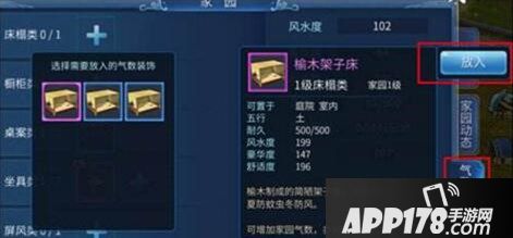 像这个紫色品质的架子床,就有风水豪华度及舒适度,可以进行气数加成。