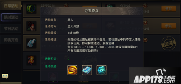 以上就是小编为大家带来的青丘狐传说手游夺宝奇兵玩法详细介绍,更多精彩内容请关注APP178手游《青丘狐传说》手游专区!
